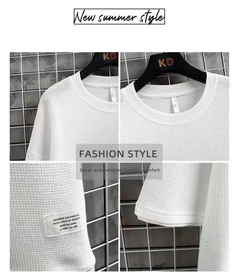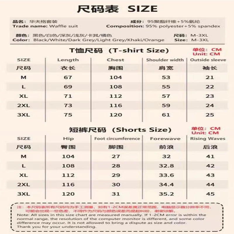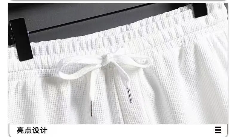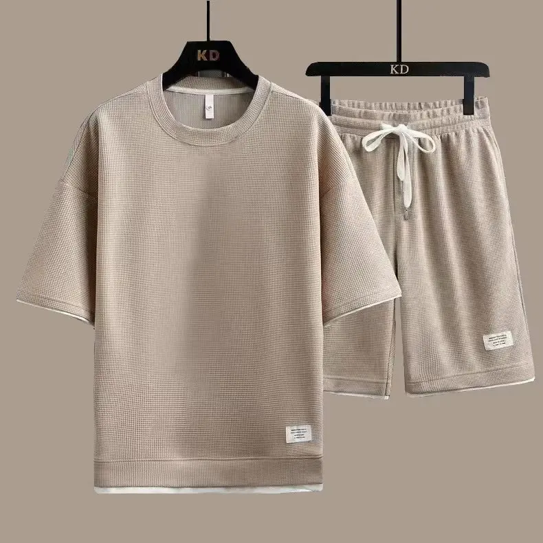 2026 New Summer Men's Fashion Fashion Fashion Brand Casual Sports Set Round Neck Loose Short sleeved Shorts Waffle Two Piece Set