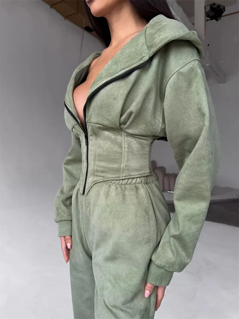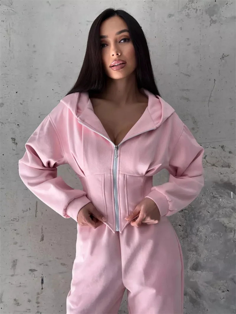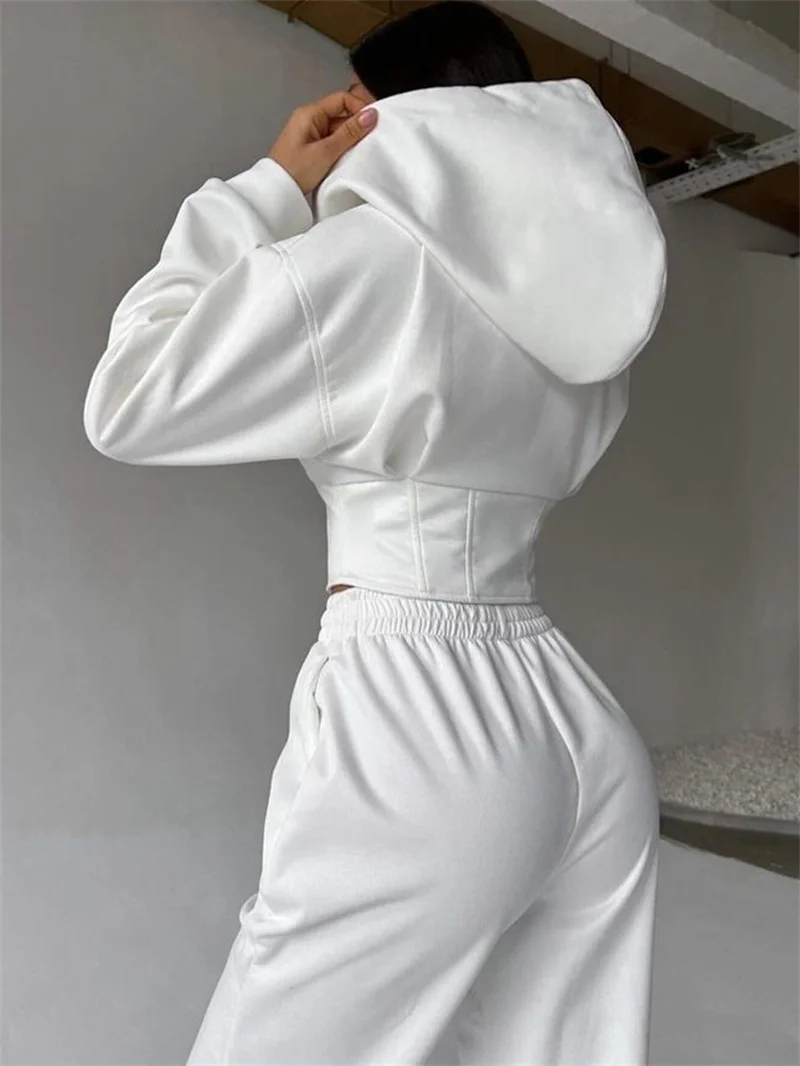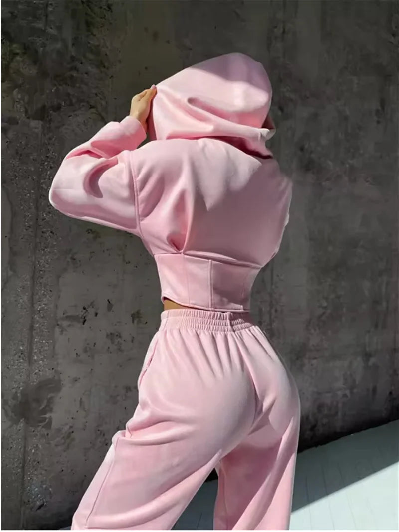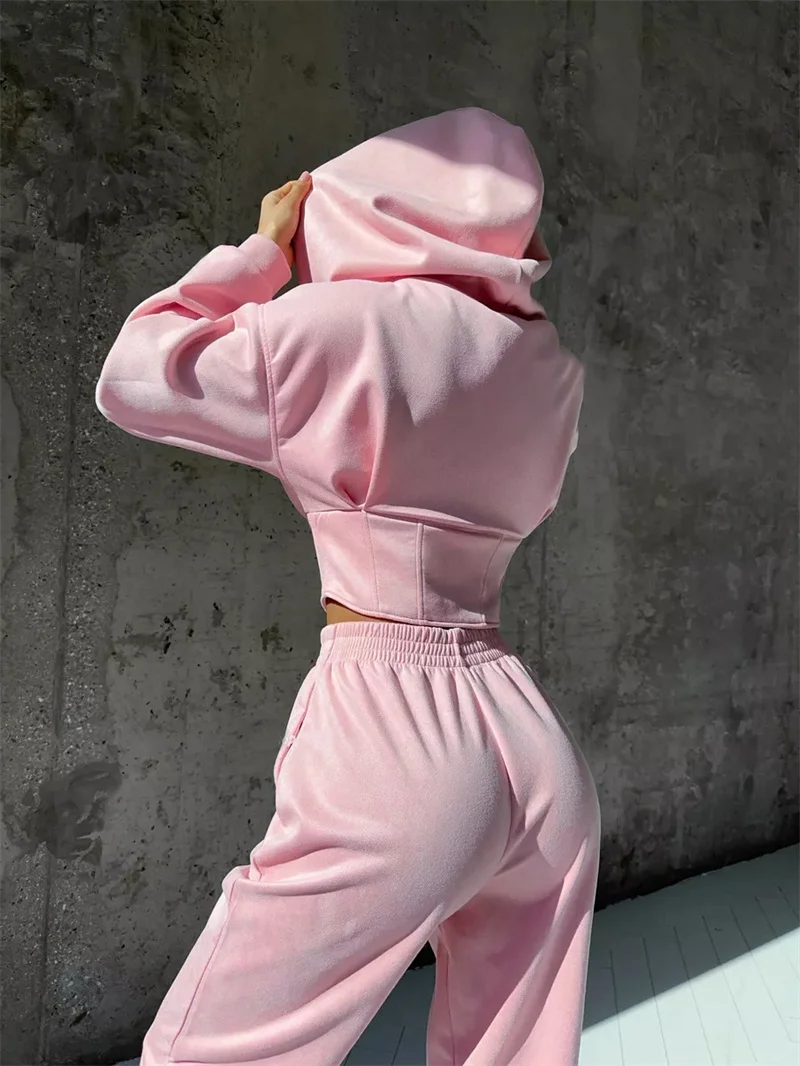 2026 New Women's Casual Sports Sets Sweatshirt Two-piece Suit Zipper-up Hooded Short Jacket Straight Trousers Sets