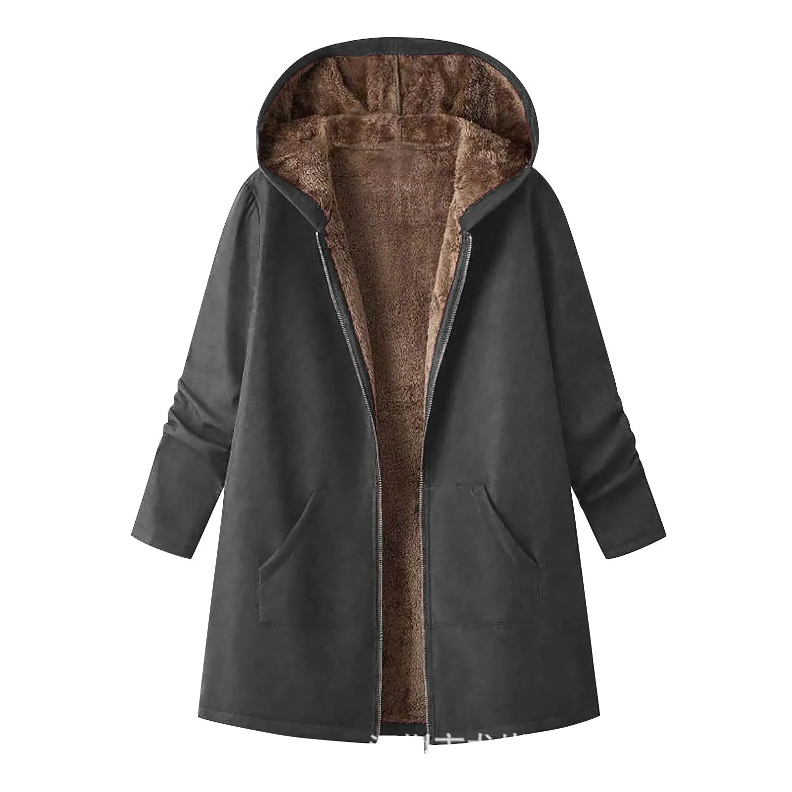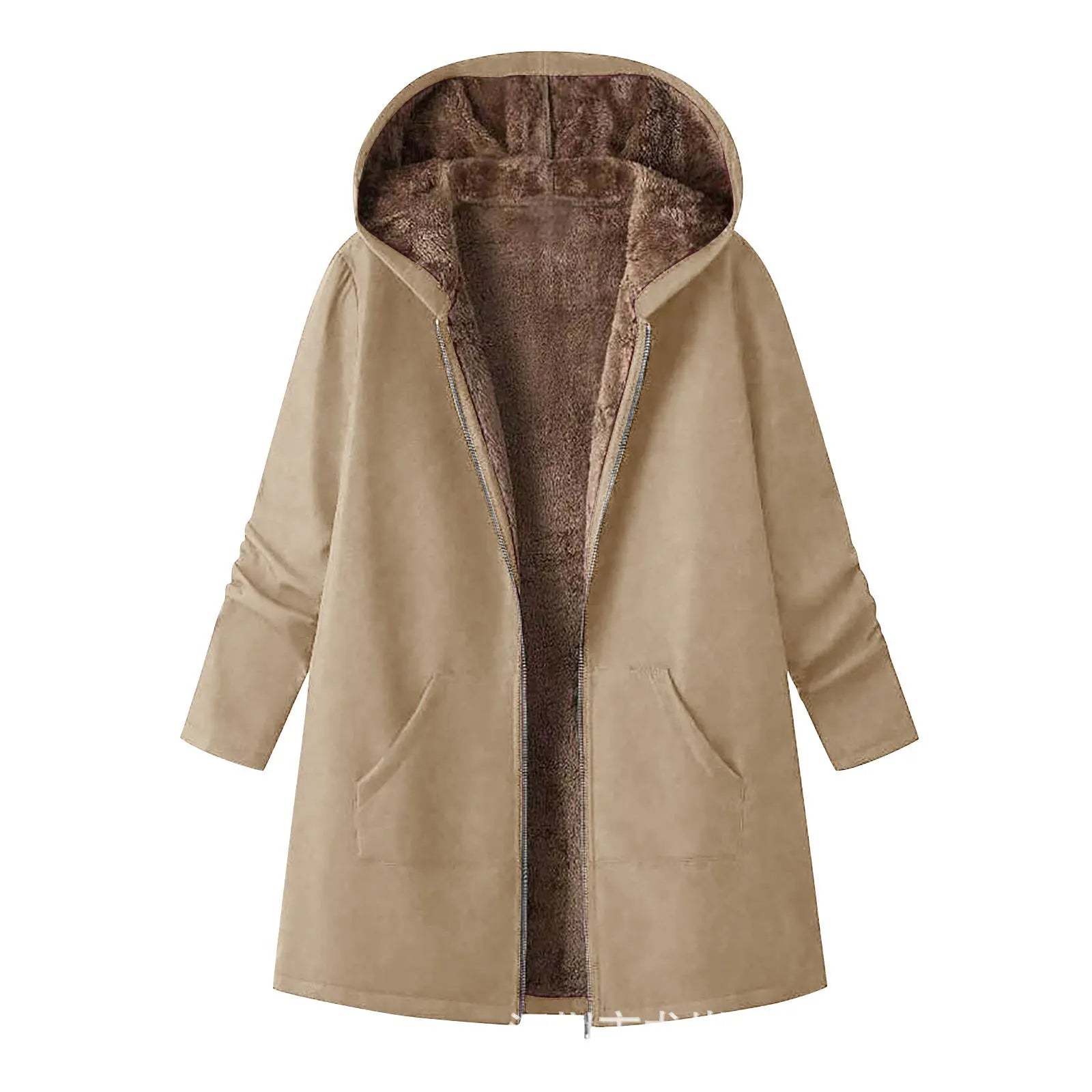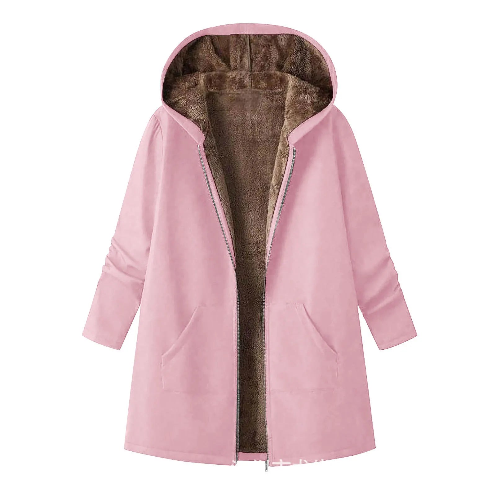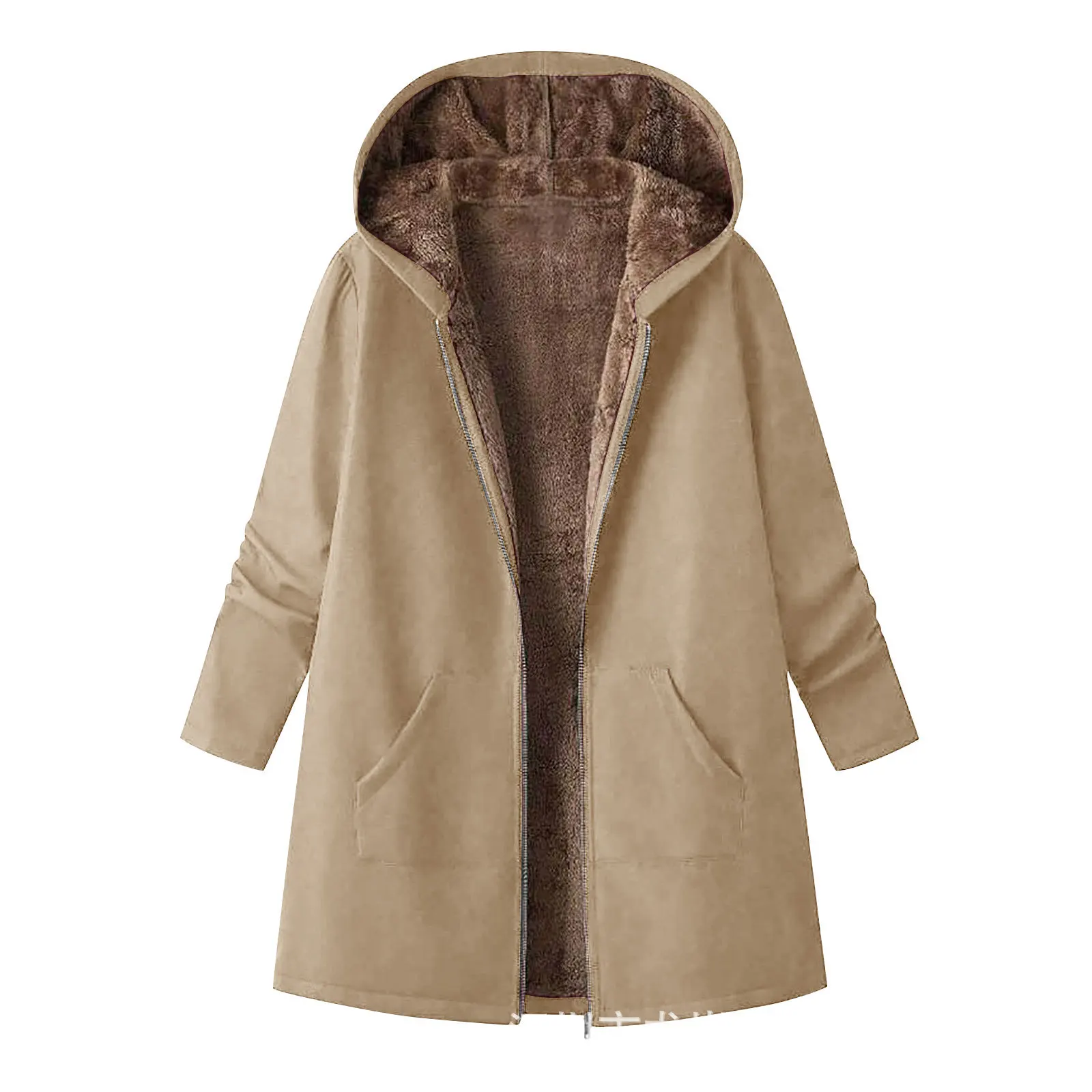 2025wish Women's Fleece Lined Hoodie Pure Color Long Sleeve Zipper Closure Comfortable Fit Sweatshirt for Autumn And Winter