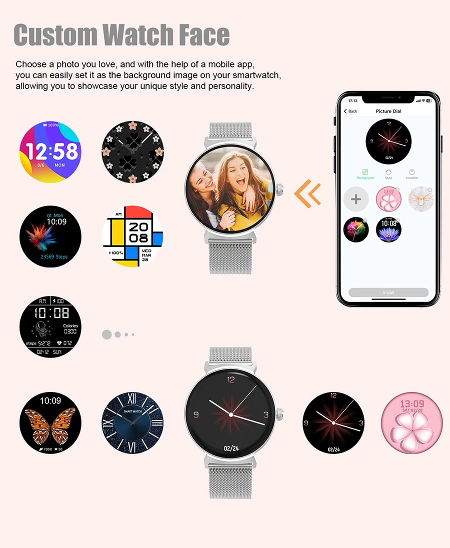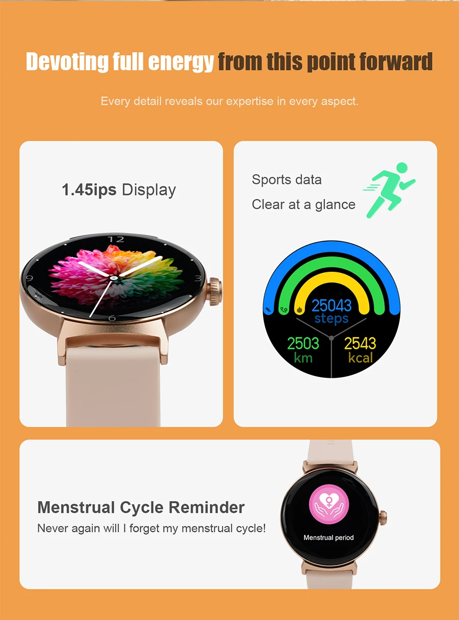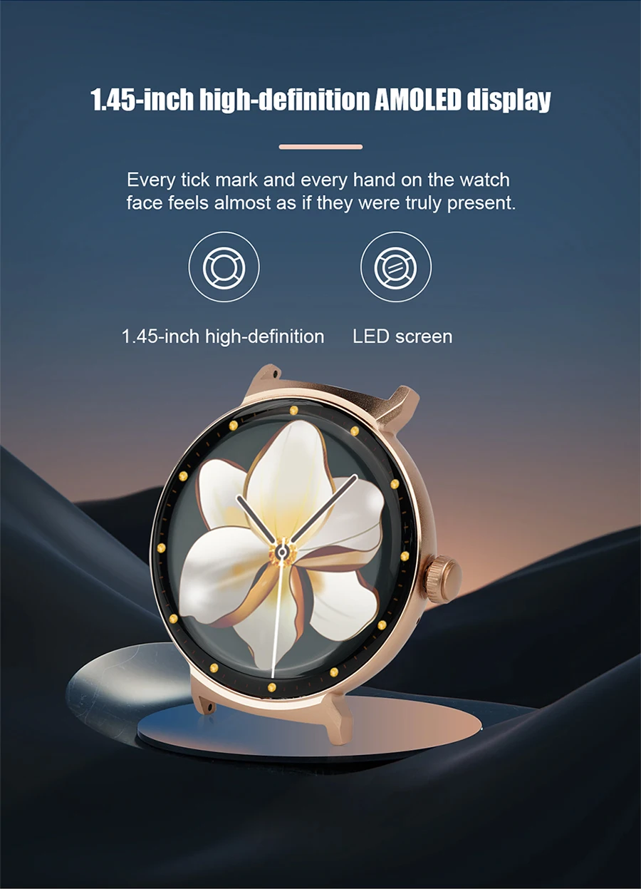 Fashion Smartwatch Women 1.45inch Screen BT Call Voice Assistant Heart Rate Blood Oxygen IP68 Waterproof DT4 New Smart Watch