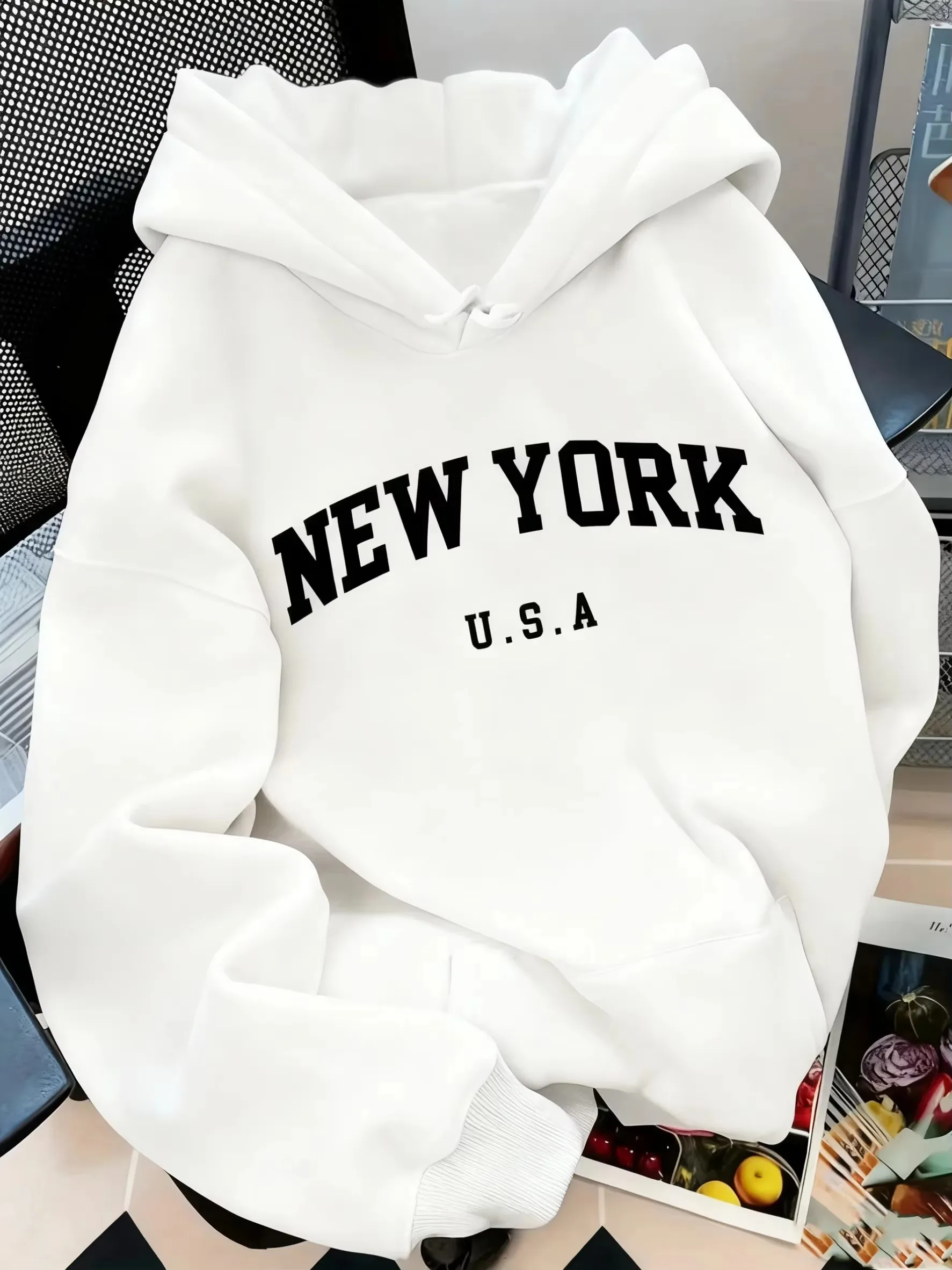 Hooded Sweat for Women Casual Cut NEW YORK USA Lettering Sweater Sweat Casual Fashion HipHop Sweat Harajuku Unisex