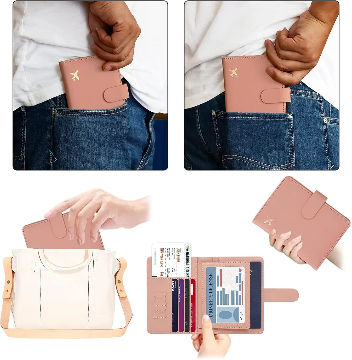 【 Practical passport case storage 】 4 ordinary slots, can hold at least 4 business cards, credit cards, 1 larger slot is enough to hold boarding passes or receipts, 2 SIM card slots. Convenient access to information during boarding and transit, completely freeing your hands and enjoying your journey.