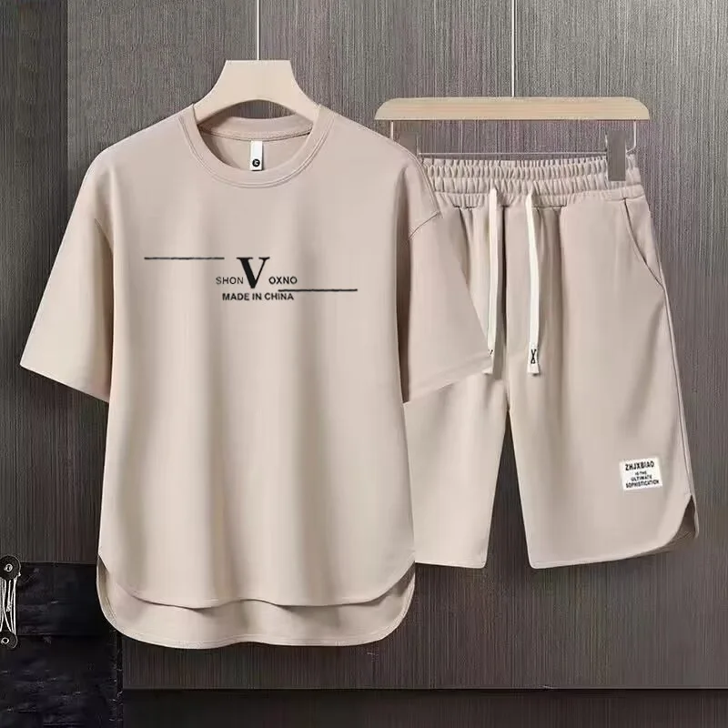 Support Customization of One Item Summer Trend Letter Printed Short Sleeved T-shirt Fashionable Versatile T-shirt Shorts Set