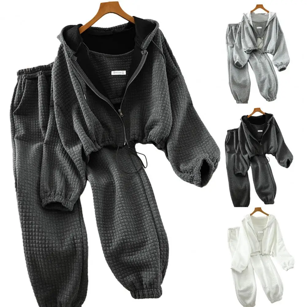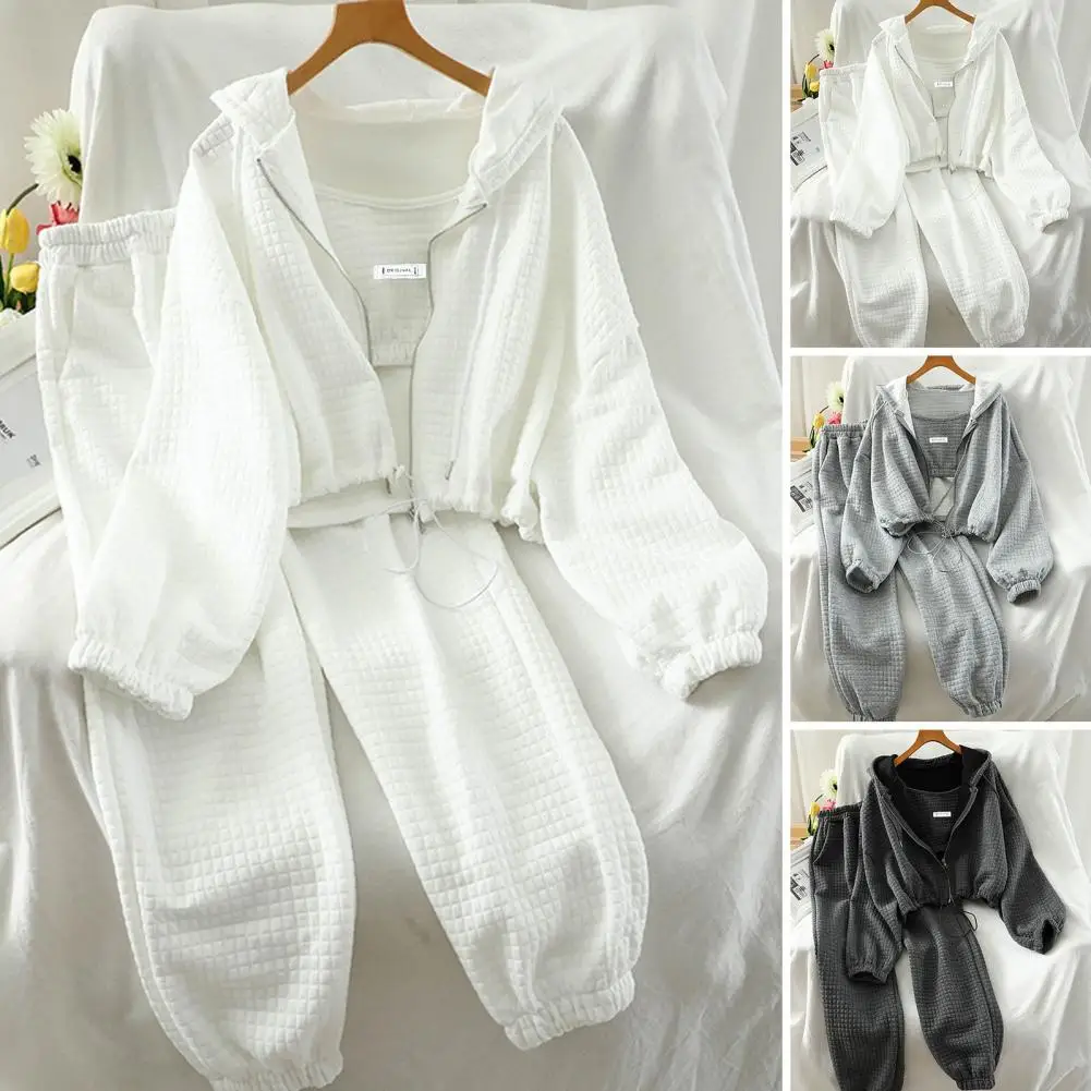 Women Hooded Tracksuit Sports 3 Pieces Set Sweatshirts Pullover Hoodies Pants Suit Home Sweatpants Trousers Outfits 2026