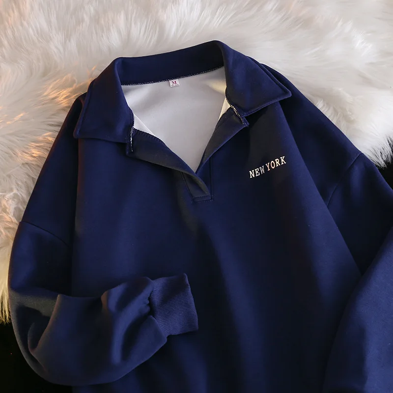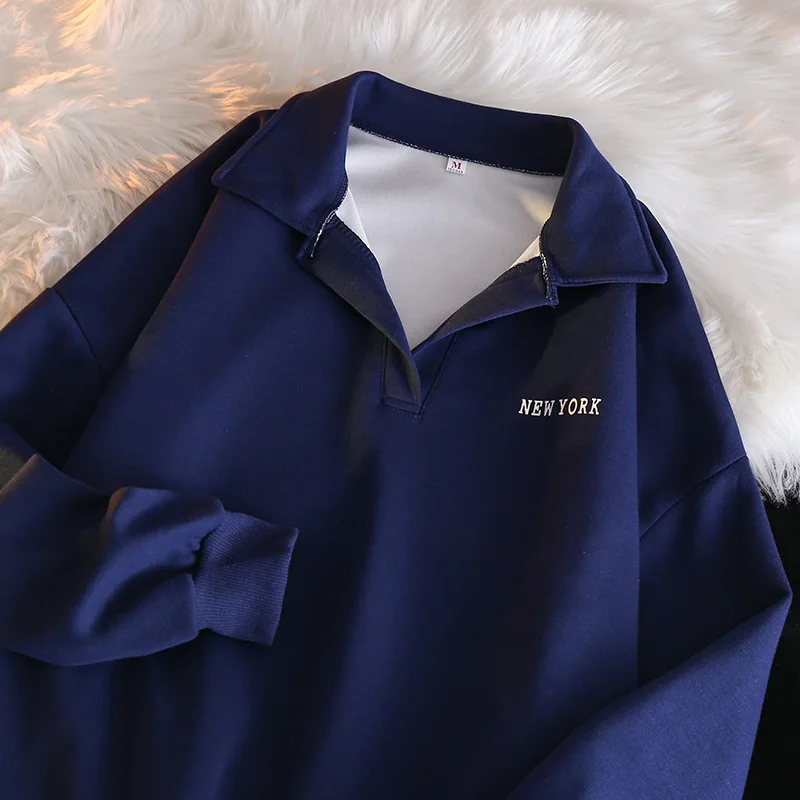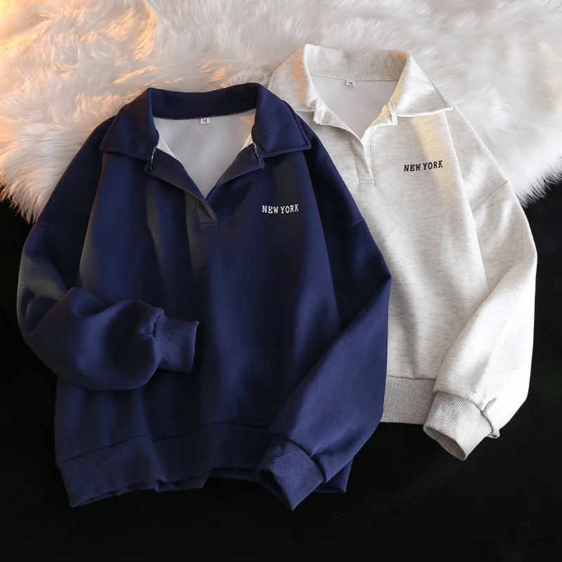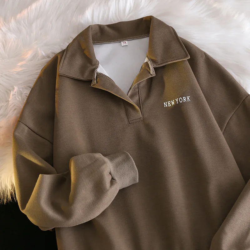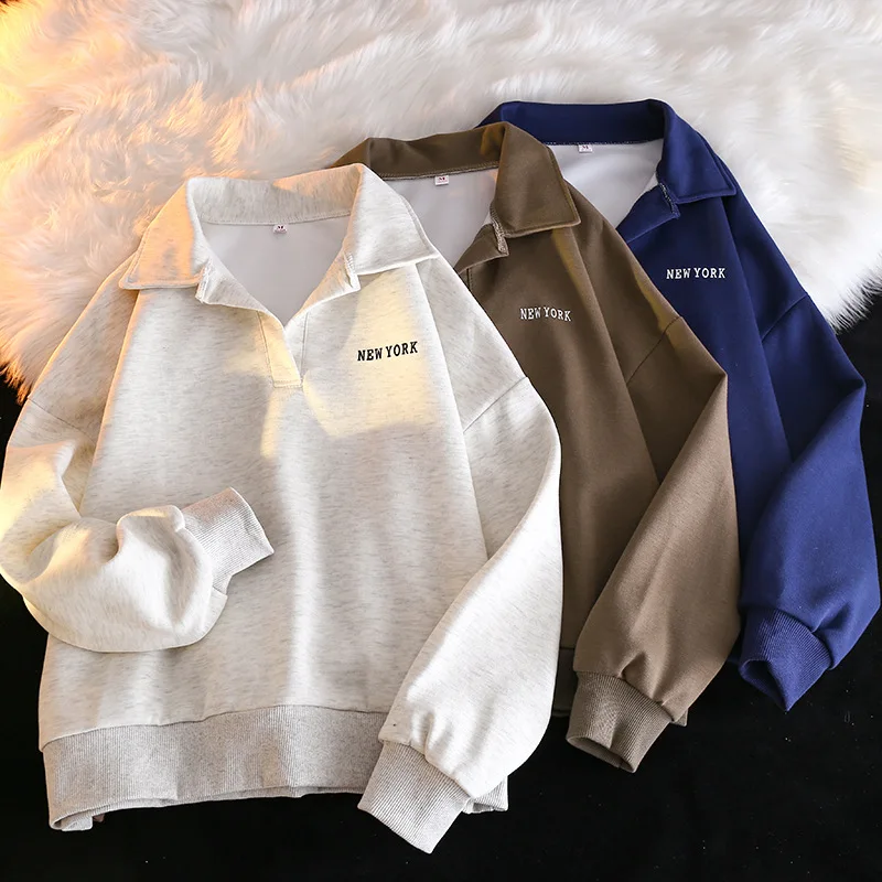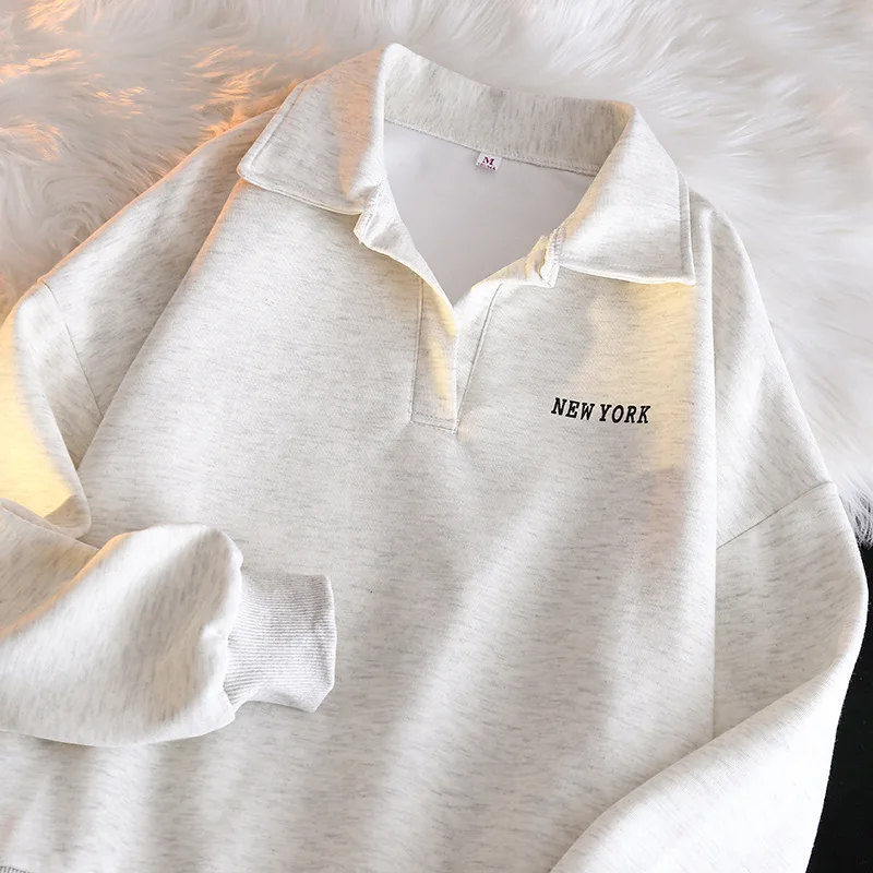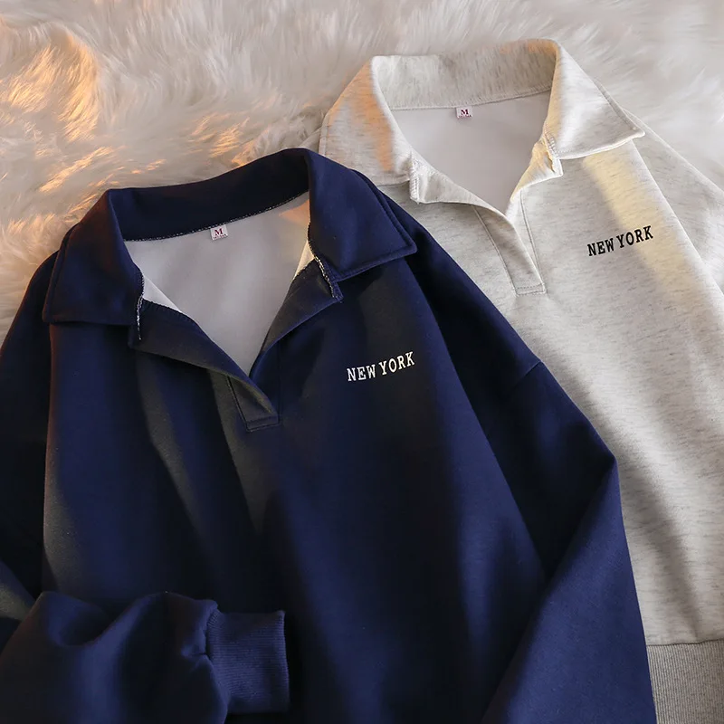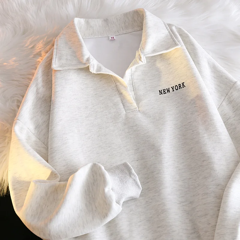 Women Sweatshirt Turn Down Collar Hoodies Letter Sweatshirts Long Sleeve Pullovers Casual Loose Fit Sports Slight Strech