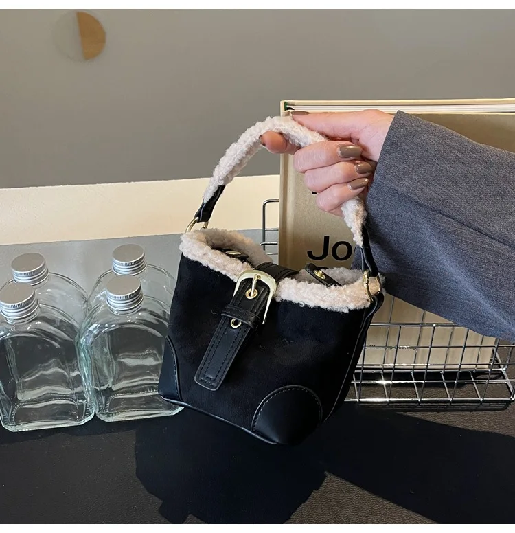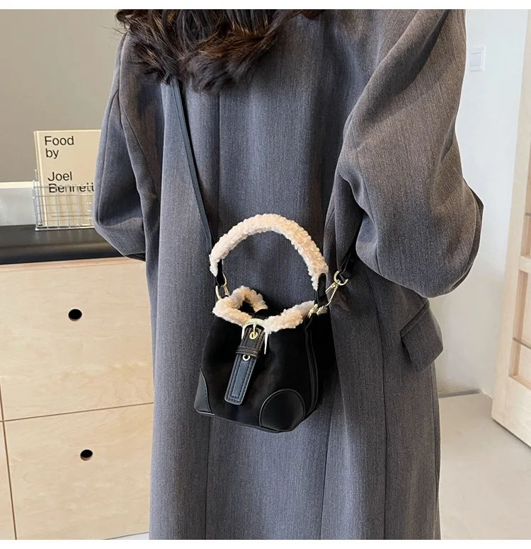 Women's Bags Bucket Shoulder Handbag Autumn Winter Vintage Versatile Lamb Wool Handbag Elegant Fashion Crossbody Bag Wholesale